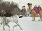 После обеда по аллеям неспешно гуляют семьи, пары, компании друзей. Кто-то останавливается, чтобы сделать фото, кто-то просто идет, любуясь тем, как зимние украшения переливаются в лучах солнца. Декорации и гирлянды словно ловят свет и отражают его в снегу, добавляя парку особого уюта, а детские карусели погрузились в сон.