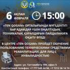 В Центре социальной адаптации лиц с инвалидностью Ten Qogam в Караганде 6 февраля в 15:00 Общественное объединение Qamqor Plus проведёт обучение по использованию современных технических средств реабилитации, сообщает акимат Карагандинской области.