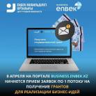 На портале Business.enbek.kz с 8 апреля начинается приём онлайн-заявок на получение государственных грантов для реализации новых бизнес-идей. На первый поток для жителей Карагандинской области выделено 92 гранта, сообщает акимат Карагандинской области.