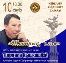 Во Дворце культуры горняков Караганды 10 апреля в 18:30 состоится творческий вечер заслуженного деятеля РК композитора и профессора Тлеугали Кишкашбаева «Шаттық елім», сообщает акимат Карагандинской области.