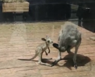 Сейчас кенгуренок уже более активно изучает окружающий мир. Сотрудники зоопарка смогли заснять его вместе с мамой на видео.