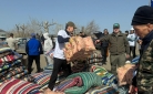 В данный момент происходит раздача продовольствия и бытовых предметов.