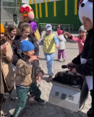 Для детей устроили веселый праздник с ростовыми куклами, спортивными конкурсами, мыльными пузырями и викторинами.