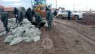 По состоянию на 10:00 часов утра спасателями проводятся противопаводковые мероприятия по укладке мешкотары и укреплению насыпного вала.
