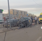 Авария случилась сегодня, 12 апреля, в 18.00 часов на улице Карла Маркса. После столкновения Hyundai и Chevrolet, водитель Hyundai врезалась в ограждение.