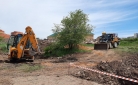 На участке, где ведутся работы, шумно: здесь подготавливают траншеи и сразу прокладывают в них трубы.