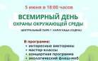 Сегодня в Центральном парке Караганды состоится праздничная программа, приуроченная ко Всемирному дню охраны окружающей среды. Гостей ждут игры и викторины, мастер-классы и концерт, передает корреспондент ekaraganda.kz.