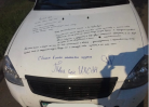 «Привет, папа»: Жительница Сарани оставила послание своему бывшему на капоте авто