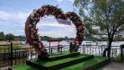 Красочная цветочная арка расположилась на углу набережной, справа от пирса. Еще одним ориентиром может послужить аллея свадебных замков. Увидеть издалека арку нетрудно – она украшена множеством цветов и выполнена в форме красного сердца.