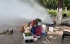 ТОО «Теплотранзит Караганда» продолжает проводить гидравлические испытания на тепловых сетях. Компания готовит город к зиме. Ранее в компании неоднократно предупреждали жителей города о том, что находиться рядом с тепловыми сетями опасно. Дефект может возникнуть на любом из участков, как это произошло сегодня. Женщине повезло - фонтан воды даже не сбил ее товар.