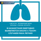 Рак легкого лидирует по смертности среди онкологических заболеваний в мире и в Казахстане. По данным Международного Агентства по изучению рака, ежегодно в мире диагностируется около 2,3 млн случаев, каждые 18 секунд в мире один человек умирает от рака легкого, об этом сообщает Министерство здравоохранения Республики Казахстан.