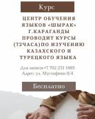 Карагандинский центр обучения «Шырак» набирает студентов на бесплатные курсы казахского и турецкого языков. Заявки принимаются до 26 августа, сообщает акимат Карагандинской области.