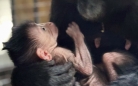 Самке мангобея Зазе четыре года. Мамой она стала впервые. Работники отдела приматов отмечают, что Заза очень хорошая мать, она не выпускает из рук свою крошку, кормит и нянчит малыша.