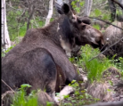 Но другие сотрудники парка еще раньше смогли заснять поистине потрясающие кадры с лосями. Листва была еще зеленая, лоси отдыхали в чаще леса.