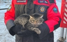 Спасатель Ерлан Нурмагамбетов поднялся на необходимую высоту, где осторожно снял испуганного котенка. После спасения пушистик был передан владельцам.
