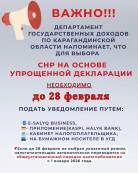Индивидуальным предпринимателям и представителям малого бизнеса Карагандинской области напоминают, что до 28 февраля необходимо определиться со специальным налоговым режимом на основе упрощённой декларации, передаёт корреспондент ekaraganda.kz.